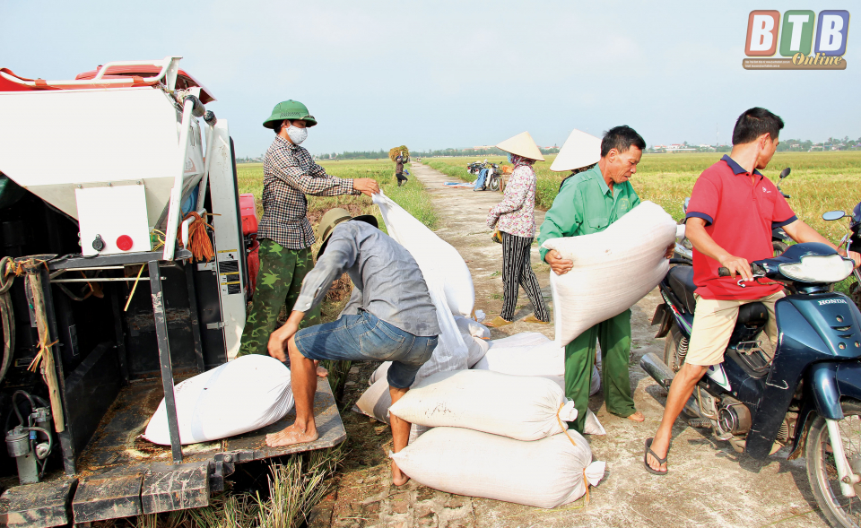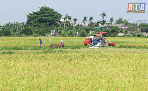 | Theo đánh giá của ngành chuyên môn, vụ xuân của Tiền Hải bảo đảm sản lượng, năng suất ổn định. Hiện nay, huyện đang tích cực chỉ đạo các địa phương tập trung huy động máy móc, nhân lực xuống đồng thu hoạch lúa. Ngoài 250 máy gặt đập liên hợp của địa phương, Tiền Hải cũng khuyến khích các chủ máy huyện ngoài đưa máy gặt về các địa phương đẩy nhanh tiến độ thu hoạch khi thời tiết không mưa, bảo đảm thu hoạch an toàn 10.230ha lúa xuân. Khuyến cáo nông dân không chủ quan với thời tiết diễn biến bất thường hiện nay, thường có mưa giông, cần tập trung gặt lúa xuân nhanh gọn. Tăng cường chỉ đạo, phân công cán bộ chuyên môn xuống cơ sở để kiểm tra, đôn đốc các địa phương thu hoạch nhanh gọn khi diện tích lúa đã chín. Tính đến ngày 5/6, diện tích lúa xuân đã thu hoạch của Tiền Hải đạt trên 40% diện tích. Ngoài ra, huyện chỉ đạo nông dân thu hoạch xong lúa xuân đến đâu thực hiện làm đất ngay đến đó đồng thời tiến hành công tác vệ sinh đồng ruộng để chuẩn bị cho sản xuất vụ mùa, đúng khung thời vụ. (Ông Phạm Văn Vang, Trưởng phòng Nông nghiệp và Phát triển nông thôn huyện Tiền Hải) |