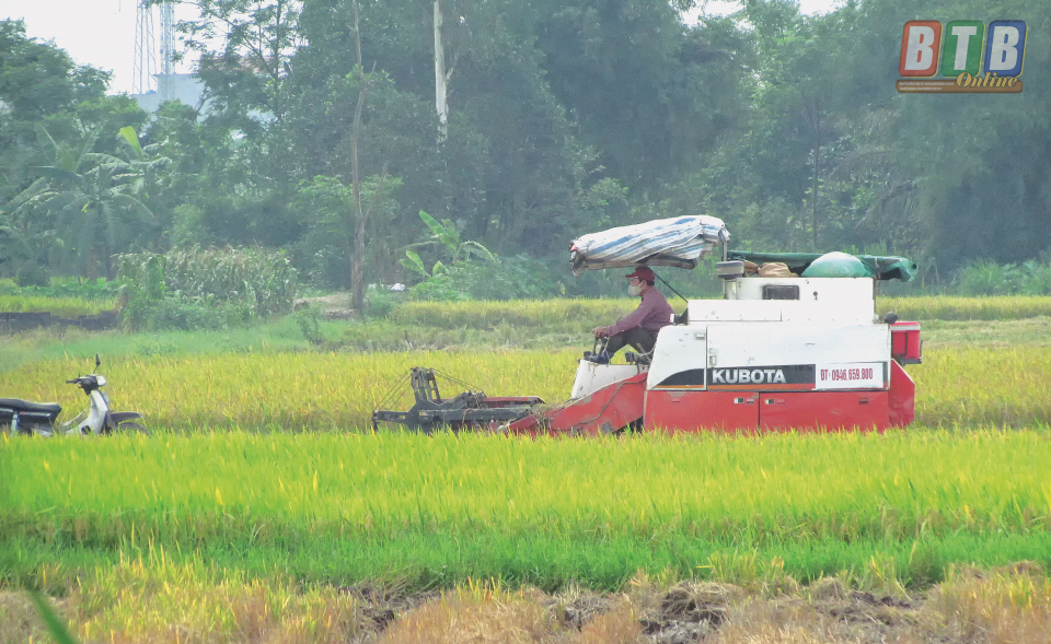 Nông dân huyện Hưng Hà thu hoạch lúa xuân.