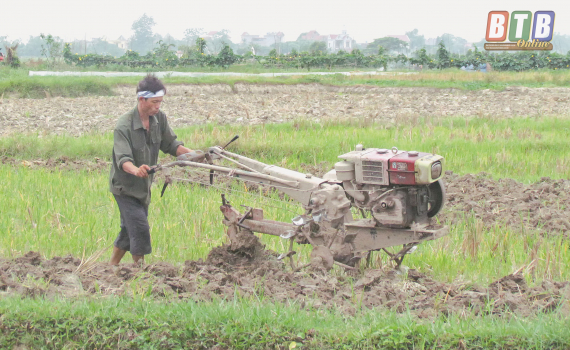 Nông dân xã Tây Đô (Hưng Hà) làm đất sản xuất vụ mùa.
