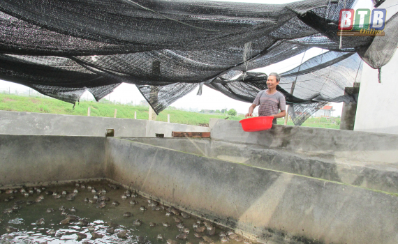 Riêng gia đình ông Khánh, nhờ nhanh nhạy nắm bắt được nhu cầu của thị trường, gia đình ông là một trong những hộ đầu tiên của xã đưa giống ếch thương phẩm về nuôi.