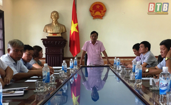 Đồng chí Trần Minh Tiến, Phó Chủ tịch UBND huyện Tiền Hải phát biểu tại hội nghị bổ khuyết phòng trừ sâu bệnh.