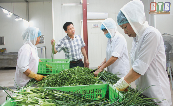 Ông Tăng Văn Hải, Giám đốc Công ty Cổ phần Chế biến nông sản, thương mại dịch vụ Thanh Nhàn cho biết: Công ty thu mua nông sản tại Thái Bình được gần 20 năm. Đến nay, mối liên kết giữa doanh nghiệp và người dân bền vững, phát triển và nhân rộng ra khoảng 60 HTX trong tỉnh. Công ty thực hiện ứng trước vốn, vật tư sản xuất như: phân bón, thuốc bảo vệ thực vật, giống... cho người nông dân, sau đó giảm trừ vào doanh số sản phẩm thu mua. Các loại rau màu vụ đông, cây trồng ngắn ngày được cam kết thu mua tối đa, sau đó vận chuyển về Hải Dương để chế biến và tiêu thụ. Nhờ cách làm trên mà thu nhập của người nông dân, các thành viên HTX bảo đảm ổn định, đời sống ngày một nâng cao. Từ hiệu quả trồng rau màu hơn hẳn trồng lúa, nhiều nông dân đã chuyển đổi sang mô hình này, giúp tăng sản lượng rau, củ, quả tại Thái Bình. Nhận thấy Thái Bình có nhiều thuận lợi trong sản xuất nông nghiệp nói chung, rau, củ, quả nói riêng, tôi đã thành lập Công ty Cổ phần Chế biến nông sản, thương mại dịch vụ Thanh Nhàn để chế biến nông sản tại chỗ, nâng cao chất lượng sản phẩm. Nhà máy được xây dựng trên diện tích 12.000m2 với hệ thống sản xuất khép kín gồm 3 dây chuyền: đóng gói tự động và đồ hộp, hệ thống cấp đông nhanh IQF, kho bảo quản -18 độ C. Sản xuất ở cả 3 vụ: xuân, hè, đông, mùa nào rau, củ đấy, trung bình mỗi tháng Công ty thu mua khoảng 400 tấn nông sản, tạo việc làm ổn định cho 90 lao động với mức thu nhập trên 4 triệu đồng/người/tháng. Thực hiện quy trình sản xuất khép kín từ liên kết trồng, thu mua, chế biến, tiêu thụ sản phẩm, thị trường tiêu thụ chủ yếu là xuất khẩu, Công ty đã tích cực tìm kiếm các đối tác Trung Quốc, Hàn Quốc..., mở ra hướng đi mới cho tiêu thụ nông sản Thái Bình.