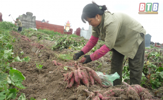 Nông dân thôn Khánh Lai, xã Tây Đô (Hưng Hà) nâng cao thu nhập từ cây khoai lang.