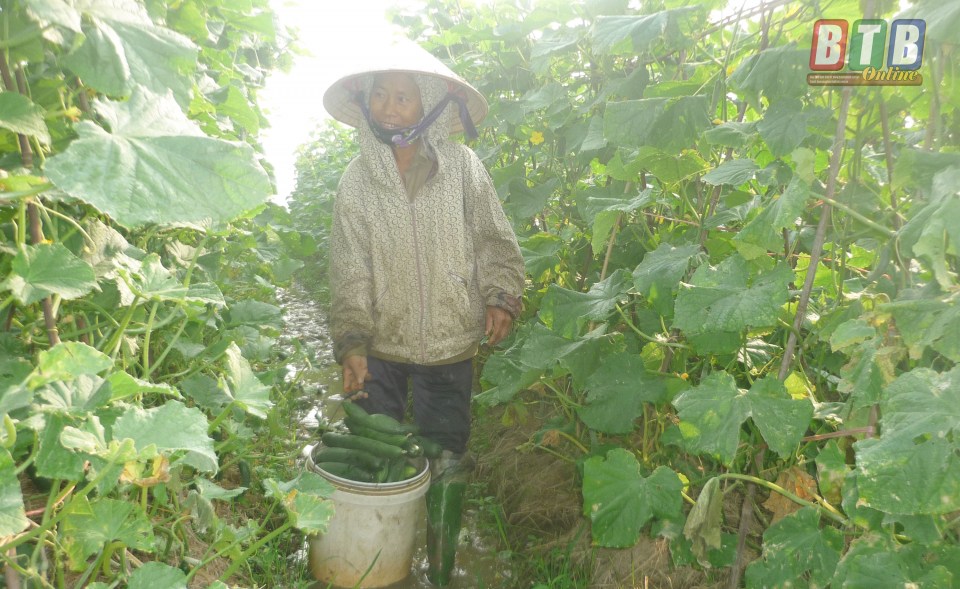 Nông dân xã Dân Chủ (Hưng Hà) trồng dưa xuất khẩu.