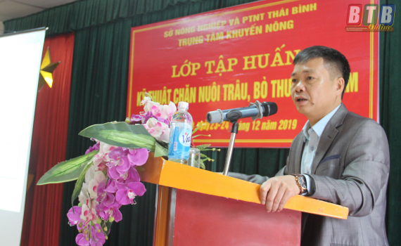 Đồng chí Trần Minh Hưng, Giám đốc Trung tâm Khuyến nông Thái Bình phát biểu khai giảng lớp tập huấn