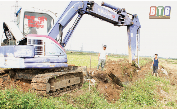Xã Việt Hùng (Vũ Thư) huy động máy móc đào đắp bờ vùng trên cánh đồng thôn Mỹ Lộc 2.