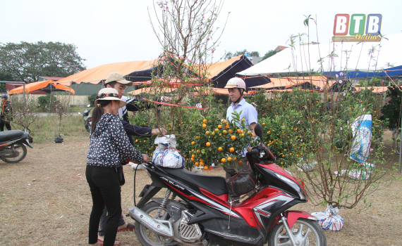 Người dân Quỳnh Phụ mua hoa cây cảnh chuẩn bị đón Tết Nguyên đán.