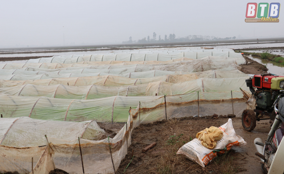 Diện tích mạ của thị trấn Thanh Nê (Kiến Xương) được che phủ nilon trong điều kiện thời tiết rét đậm.