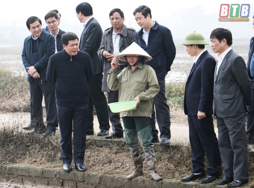 Trực tiếp kiểm tra tình hình sản xuất tại một số xứ đồng của thị trấn Thanh Nê (Kiến Xương) và Tây An (Tiền Hải), đồng chí Bí thư Tỉnh ủy, Chủ tịch HĐND tỉnh hoan nghênh sự chủ động, tích cực của ngành Nông nghiệp và cơ quan, đơn vị chuyên môn các địa phương trong việc bảo đảm đủ nguồn nước phục vụ đổ ải, làm đất cũng như hướng dẫn người dân quy trình chăm sóc, bảo vệ các trà mạ trước thời tiết bất lợi. Đặc biệt, một số địa phương đã tuyên truyền, vận động nông dân tham gia đăng ký gieo mạ khay, cấy máy cũng như tích tụ ruộng đất, đầu tư phương tiện máy móc hiện đại vào sản xuất...