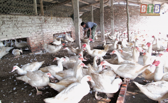 Người chăn nuôi xã Thụy Phong (Thái Thụy) thực hiện quản lý nuôi nhốt đàn gia cầm.