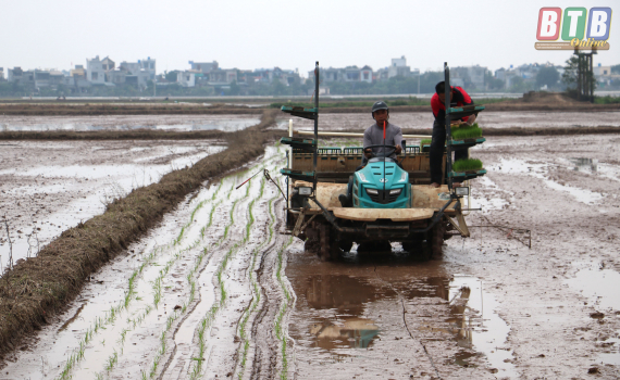 Hơn 1.057ha lúa vụ xuân 2020 của huyện Kiến Xương gieo cấy theo phương thức cấy máy.