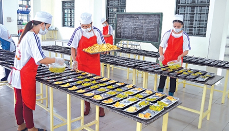 Khác với các năm trước đây, năm học 2016 - 2017, nhà trường đã đổi mới việc chọn lựa, thẩm định và hợp đồng với một cơ sở cung cấp suất ăn duy nhất thay vì nhiều cơ sở nhỏ lẻ, bảo đảm suất ăn trưa cho gần 1.000 học sinh từ lớp 1 đến lớp 4. Thay vì 3 em chung 1 cặp lồng, hiện nay mỗi em có một khay đồ ăn 5 ngăn bằng inox, có nắp nhựa. Thức ăn nóng dẻo, thơm ngon, thực đơn phong phú, đa dạng hơn hẳn mà giá thành không thay đổi. Học sinh ăn ngon miệng, phụ huynh phản hồi hài lòng, vì vậy giáo viên chúng tôi cũng yên tâm, phấn khởi.