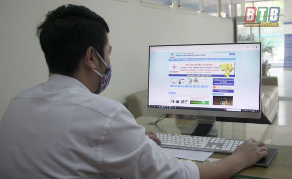 Cán bộ Công ty Điện lực Thái Bình tra cứu thông tin trên trang Web Trung tâm Chăm sóc khách hàng Điện lực Miền Bắc.