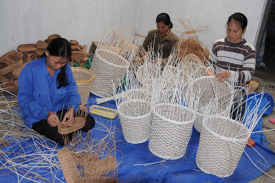 Cơ sở mây tre đan của chị Tuyến vay vốn quỹ tín dụng tạo việc làm cho hàng chục hộ gia đình.
