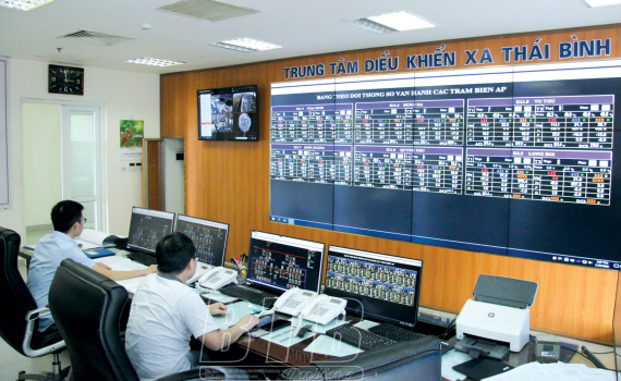 Trung tâm điều khiển xa Công ty Điện lực Thái Bình theo dõi hệ thống lưới điện bảo đảm cấp điện ổn định, an toàn trên địa bàn toàn tỉnh.