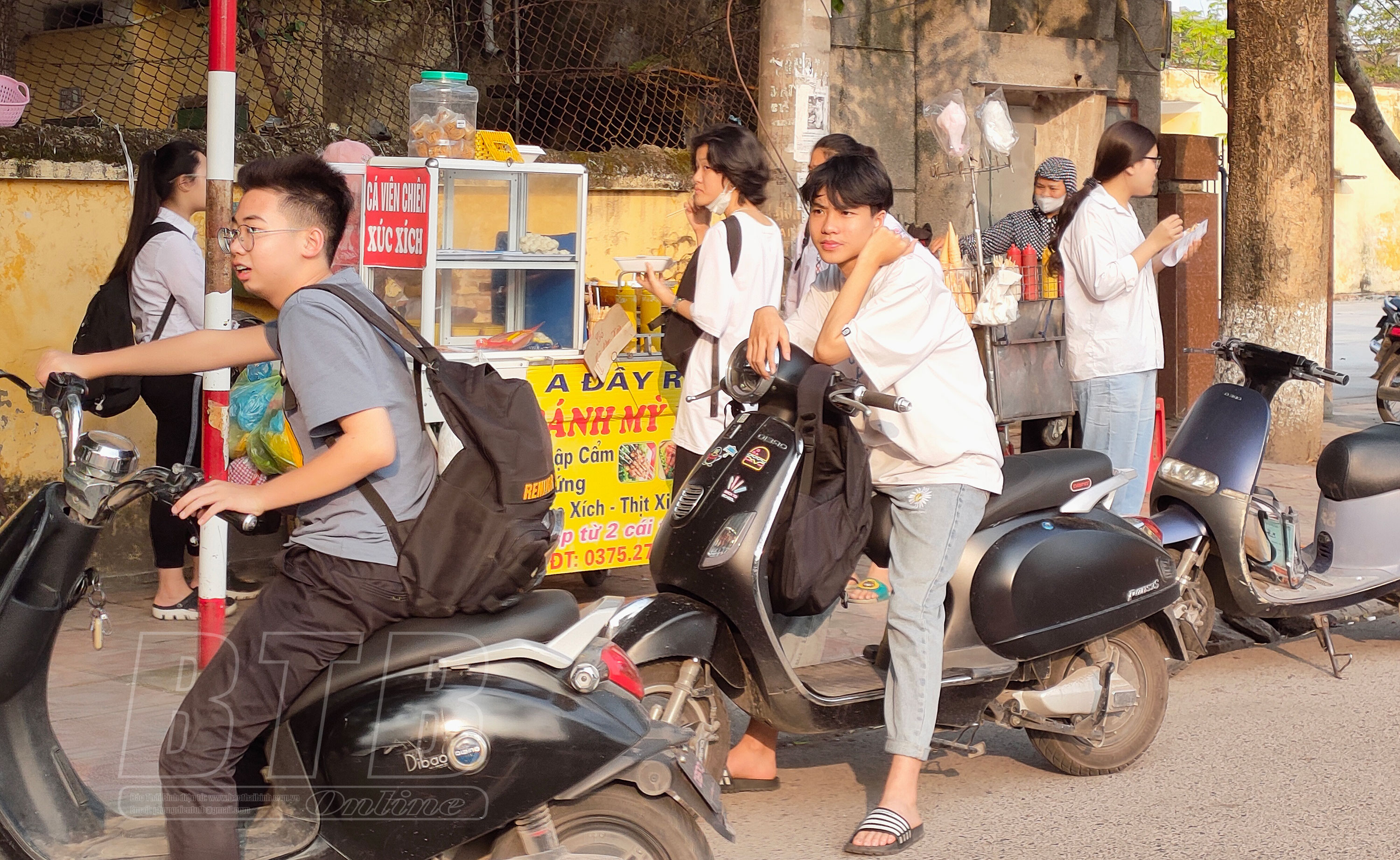Theo ghi nhận trước khu vực cổng Trường Tiểu học Kỳ Bá và Trường THCS Kỳ Bá (đường Nguyễn Đình Chính, thành phố Thái Bình), vào giờ tan học, học sinh tập trung khá đông xung quanh một số xe bán đồ ăn di động và cửa hàng tạp hóa. Đủ các loại đồ ăn như: xúc xích, trà sữa, nước ngọt, bò viên chiên… Nhiều học sinh không ngần ngại cùng bạn bè mua và thưởng thức ngay tại cổng trường. Một số em chia sẻ, mua đồ ăn gần trường tiện, rẻ và ngon miệng. Không chỉ bán đồ ăn, hiện nay tại một số cửa hàng tạp hóa, bán đồ chơi còn bán cả các loại pop it, slime, con dấu, thậm chí là thuốc lá điện tử không rõ nguồn gốc, thế nhưng có nhiều học sinh lại rất thích những đồ chơi này và có hiện tượng trở thành trào lưu trong học sinh.