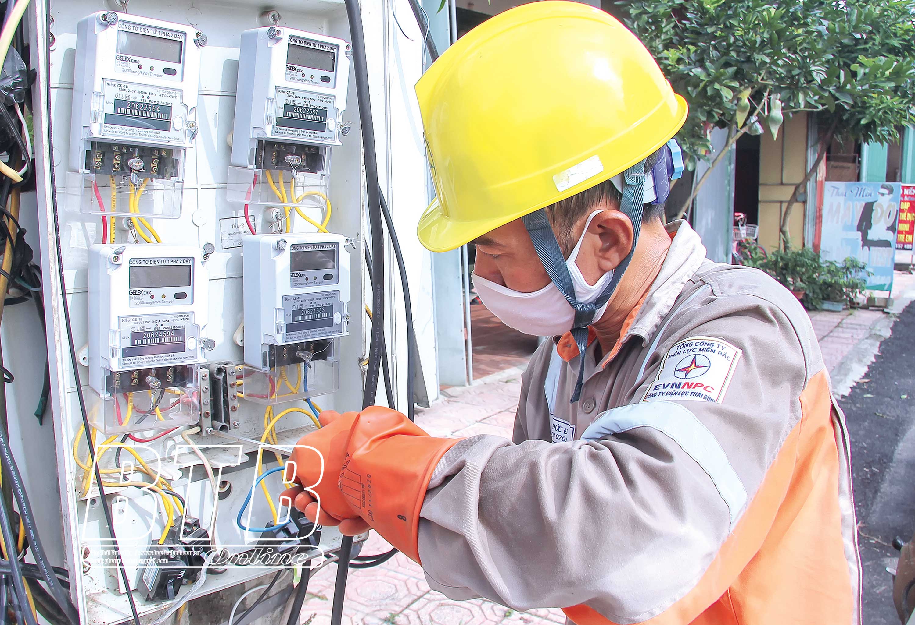 Công nhân Công ty Điện lực Thái Bình lắp công tơ đo xa cho khách hàng.