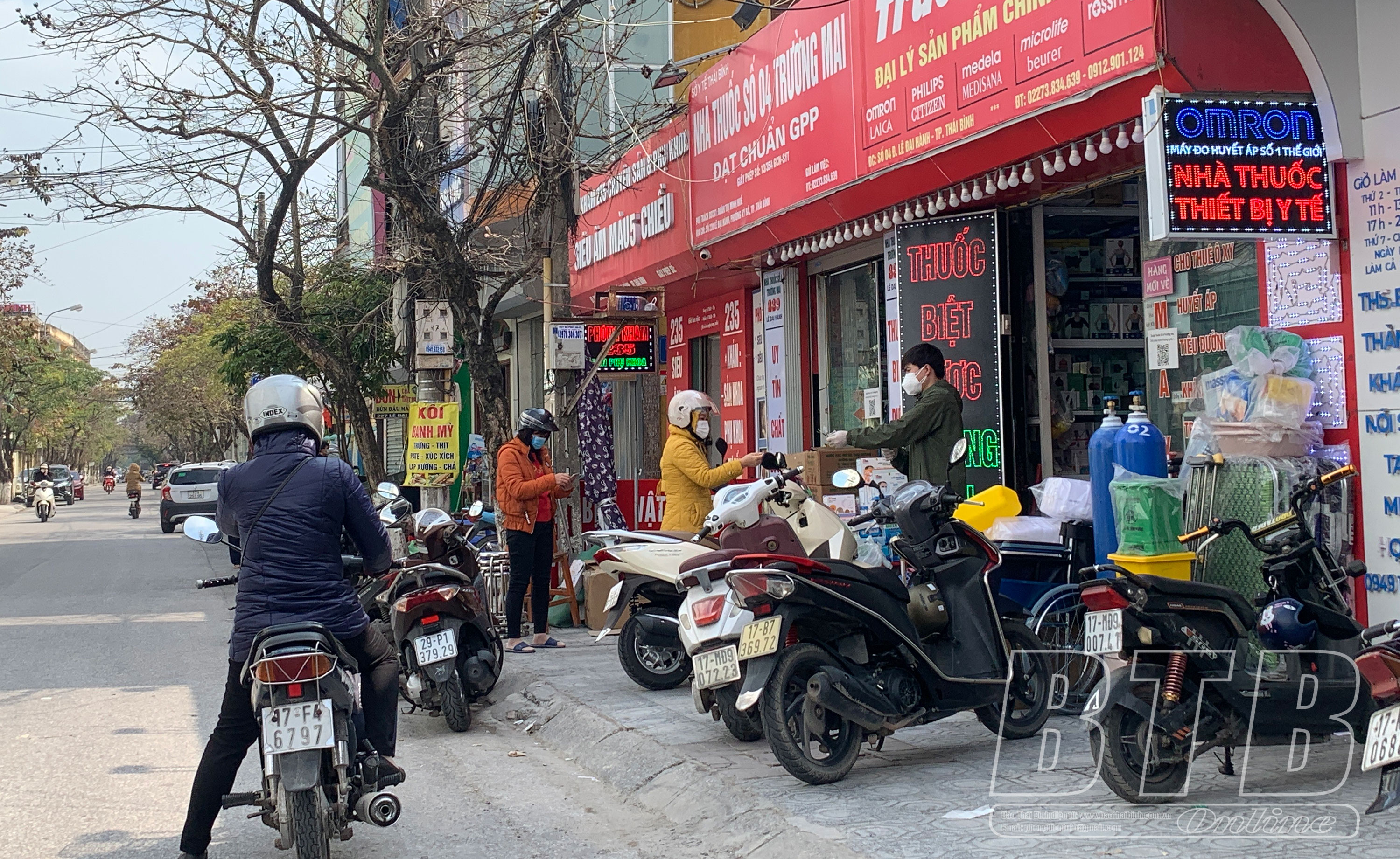 Các nhà thuốc lớn trên địa bàn thành phố Thái Bình đều tấp nập khách hàng.