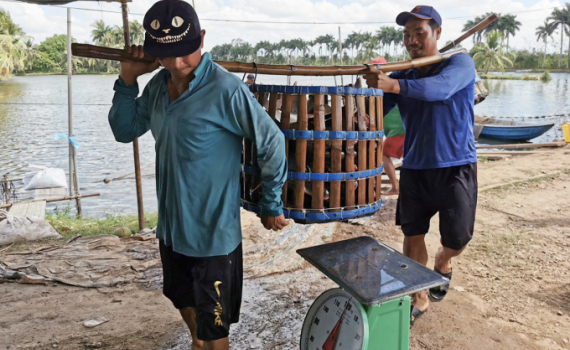 Nông dân Bình Thuỷ (Cần Thơ) thu hoạch cá tra. Ảnh: Cửu Long