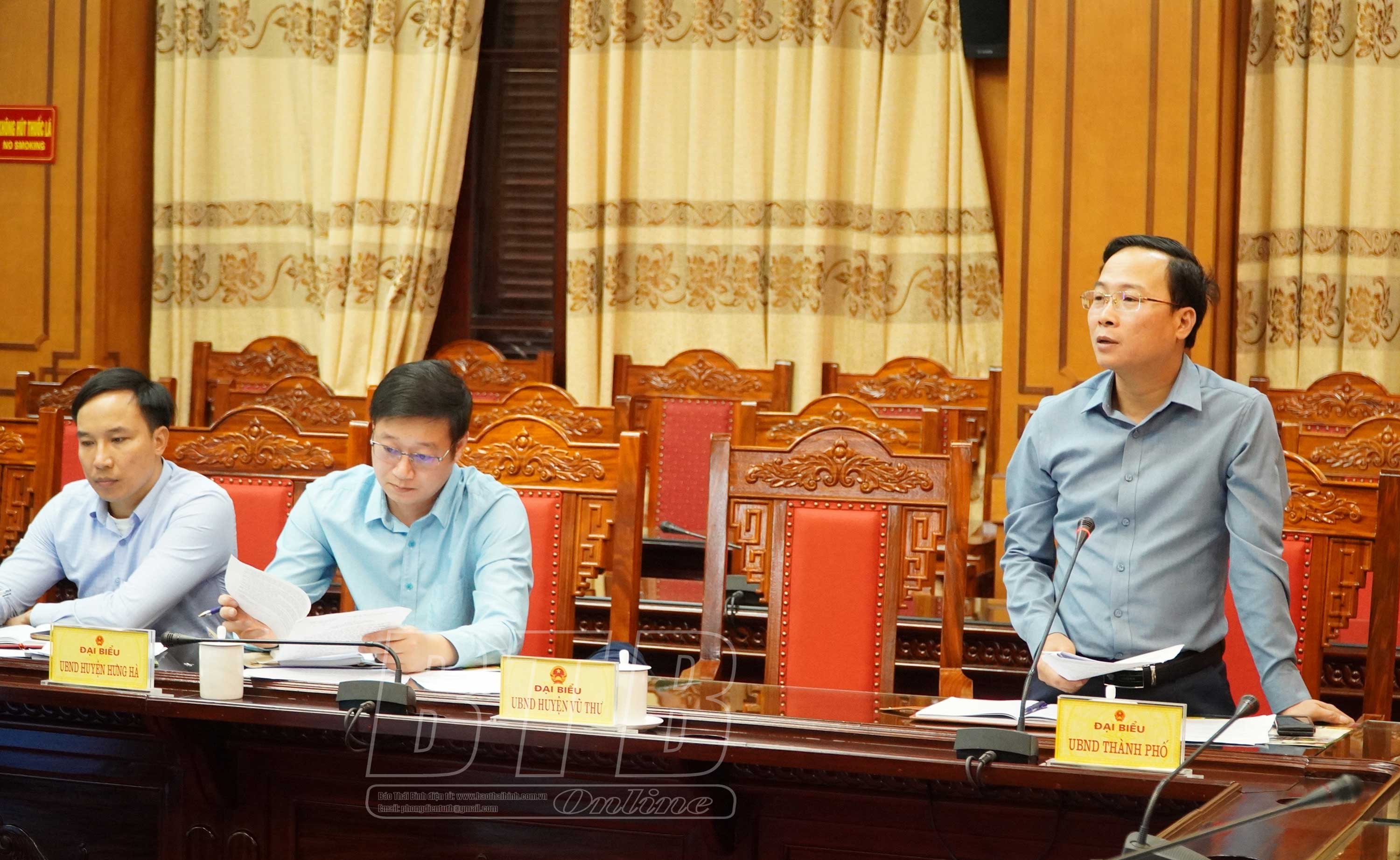 Lãnh đạo UBND thành phố Thái Bình báo cáo công tác chuẩn bị mặt bằng, bảo đảm an ninh trật tự, an toàn giao thông, vệ sinh môi trường.