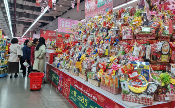 Những ngày này, hàng hóa phục vụ thị trường tết dồi dào và được các trung tâm thương mại, siêu thị, cửa hàng bày bán đẹp mắt và hấp dẫn. Tại siêu thị Go Thái Bình, các giá kệ luôn đầy ắp sản phẩm và siêu thị cũng tăng diện tích trưng bày, giới thiệu, bán hàng. Các nhóm mặt hàng được siêu thị ưu tiên nhập về nhiều cung cấp cho khách hàng gồm thực phẩm tươi sống, thực phẩm chế biến, nông sản, sản phẩm OCOP và một số mặt hàng thiết yếu có nhu cầu tiêu dùng cao trong dịp tết như bia, rượu, nước giải khát, bánh kẹo, mì chính, dầu ăn, nước mắm...