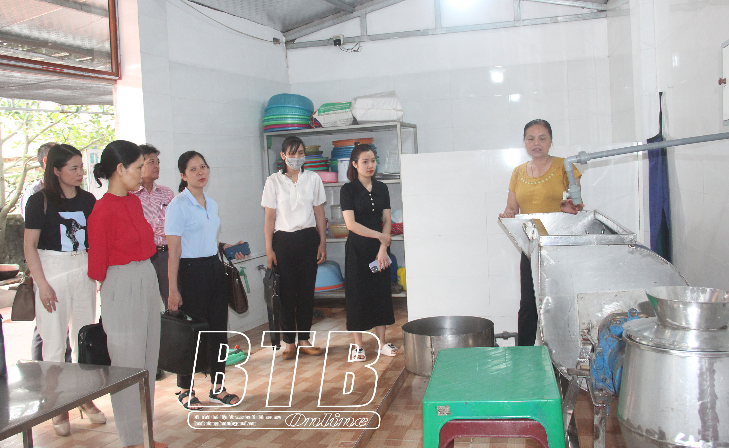 Đoàn kiểm tra việc thực hiện các điều kiện bảo đảm ATTP tại cơ sở sản xuất thực phẩm chay Vinh Kha, xã Tiến Đức (Hưng Hà).