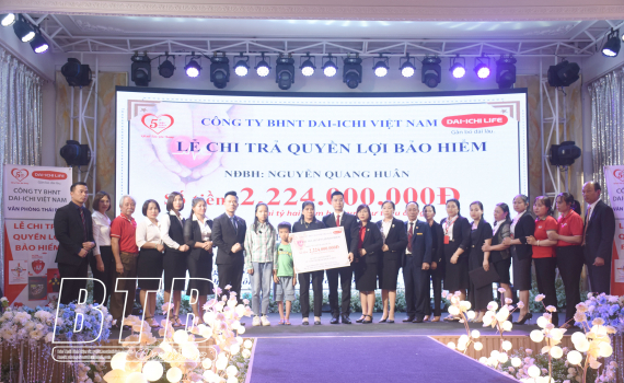 Tại buổi lễ, lãnh đạo Dai-ichi Life Việt Nam đã trao số tiền hơn 2,2 tỷ đồng cho thân nhân gia đình; đồng thời bày tỏ sự chia buồn sâu sắc với gia đình khách hàng. Dai-ichi Life Việt Nam hy vọng giá trị quyền lợi bảo hiểm nhận được hôm nay sẽ phần nào hỗ trợ gia đình khách hàng vượt qua khó khăn, sớm ổn định cuộc sống.