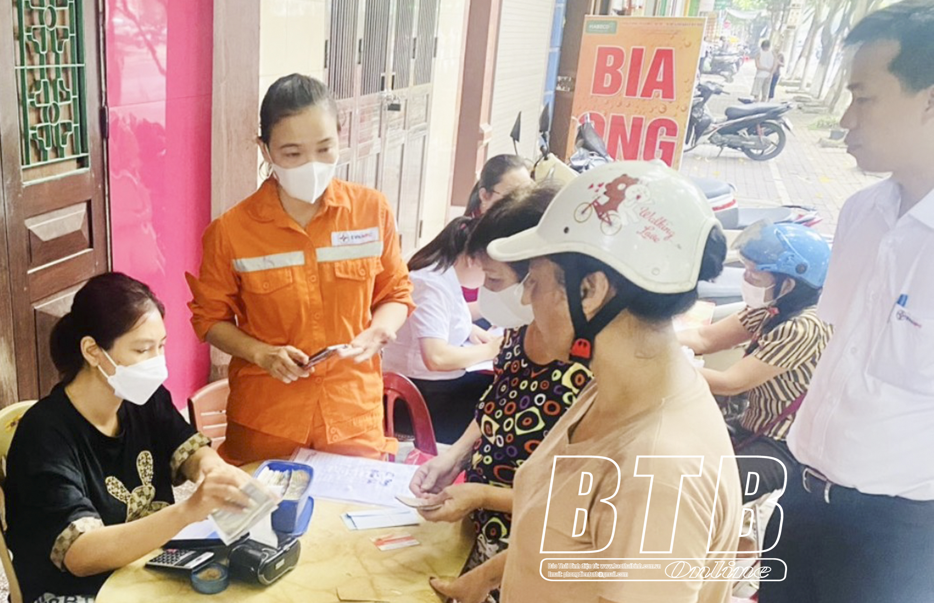 Điện lực thành phố Thái Bình phối hợp với các ngân hàng tuyên truyền, phổ biến về thanh toán tiền điện không dùng tiền mặt.