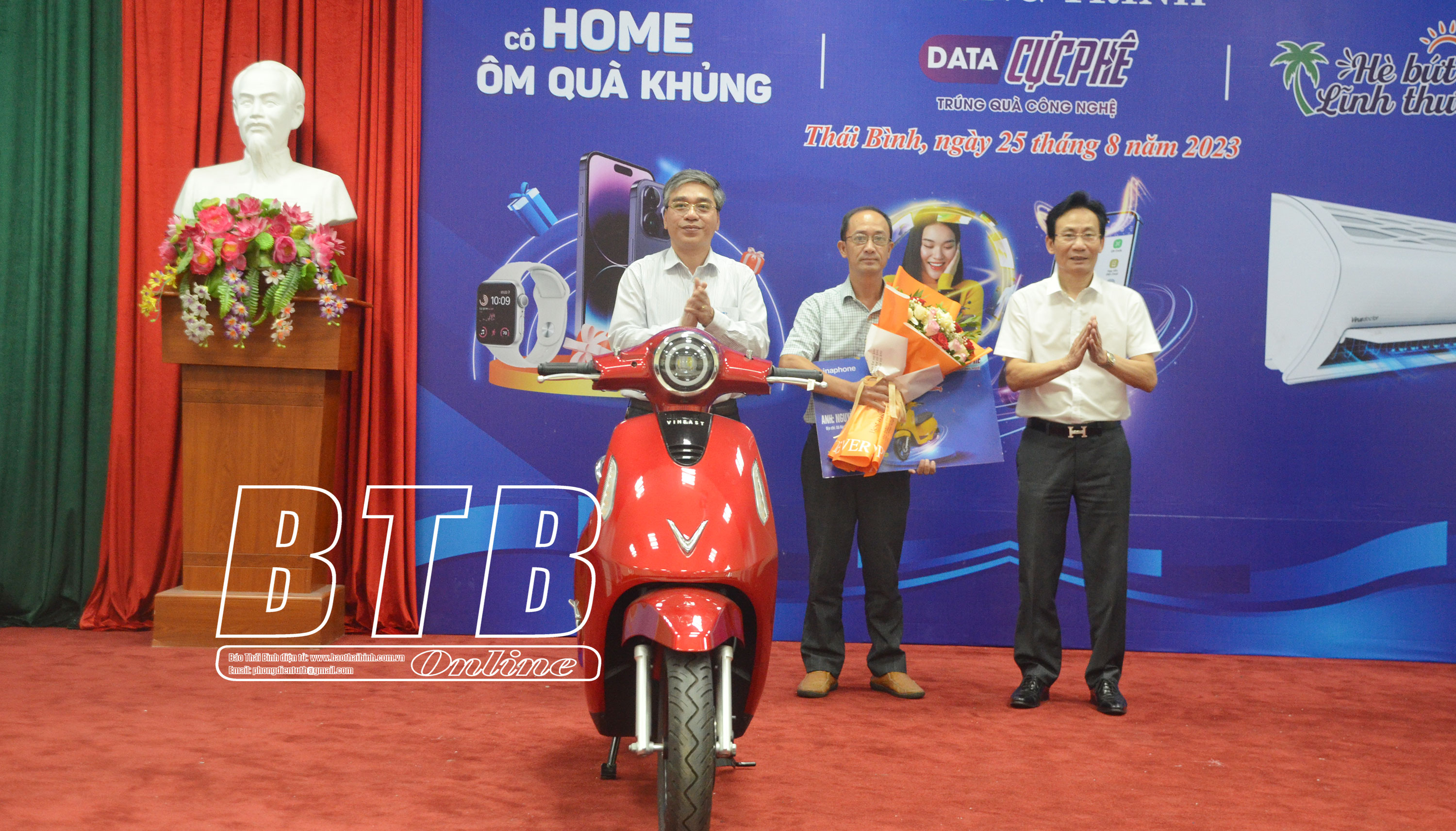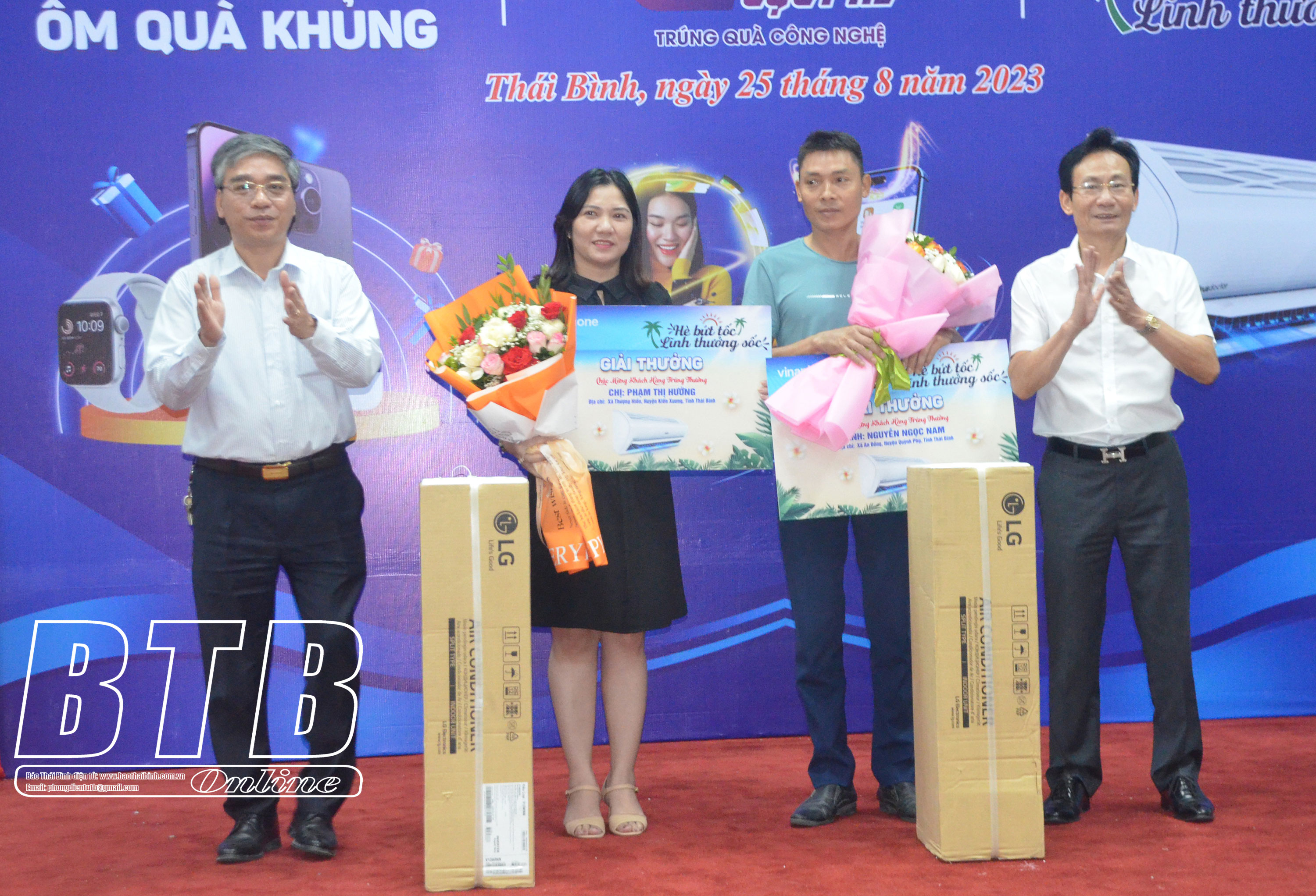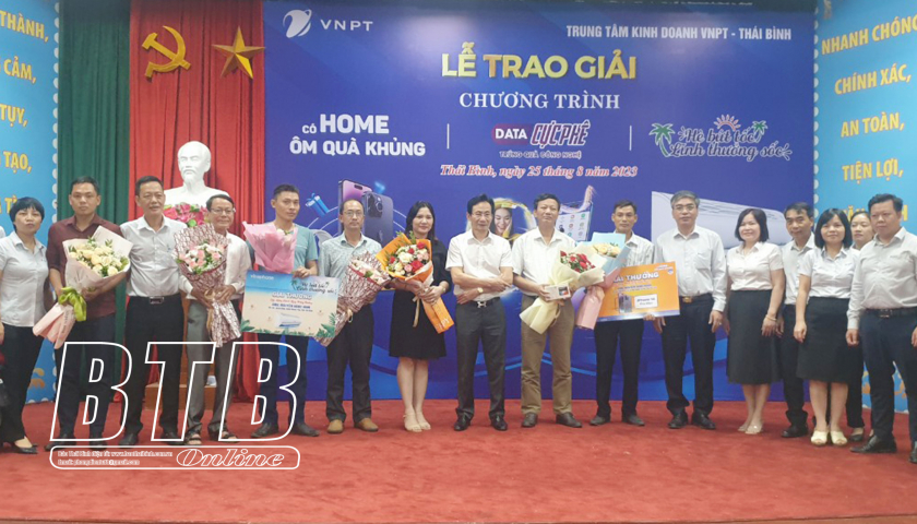 Trong dịp hè năm nay, Trung tâm Kinh doanh VNPT-Thái Bình tổ chức 3 chương trình quay trúng thưởng: “Data cực phê – trúng quà công nghệ”, “Có Home – ôm quà khủng” và “Hè bứt tốc – lĩnh thưởng sốc” với các phần quà giá trị: điện thoại IPhone 14 ProMax, xe máy điện Vinfast, máy tính bảng, điện thoại thông minh, điều hòa. Qua thống kê, có hàng nghìn khách hàng tham gia quay trúng thưởng, 7 khách hàng may mắn trúng giải với tổng trị giá các giải thưởng gần 85 triệu đồng.