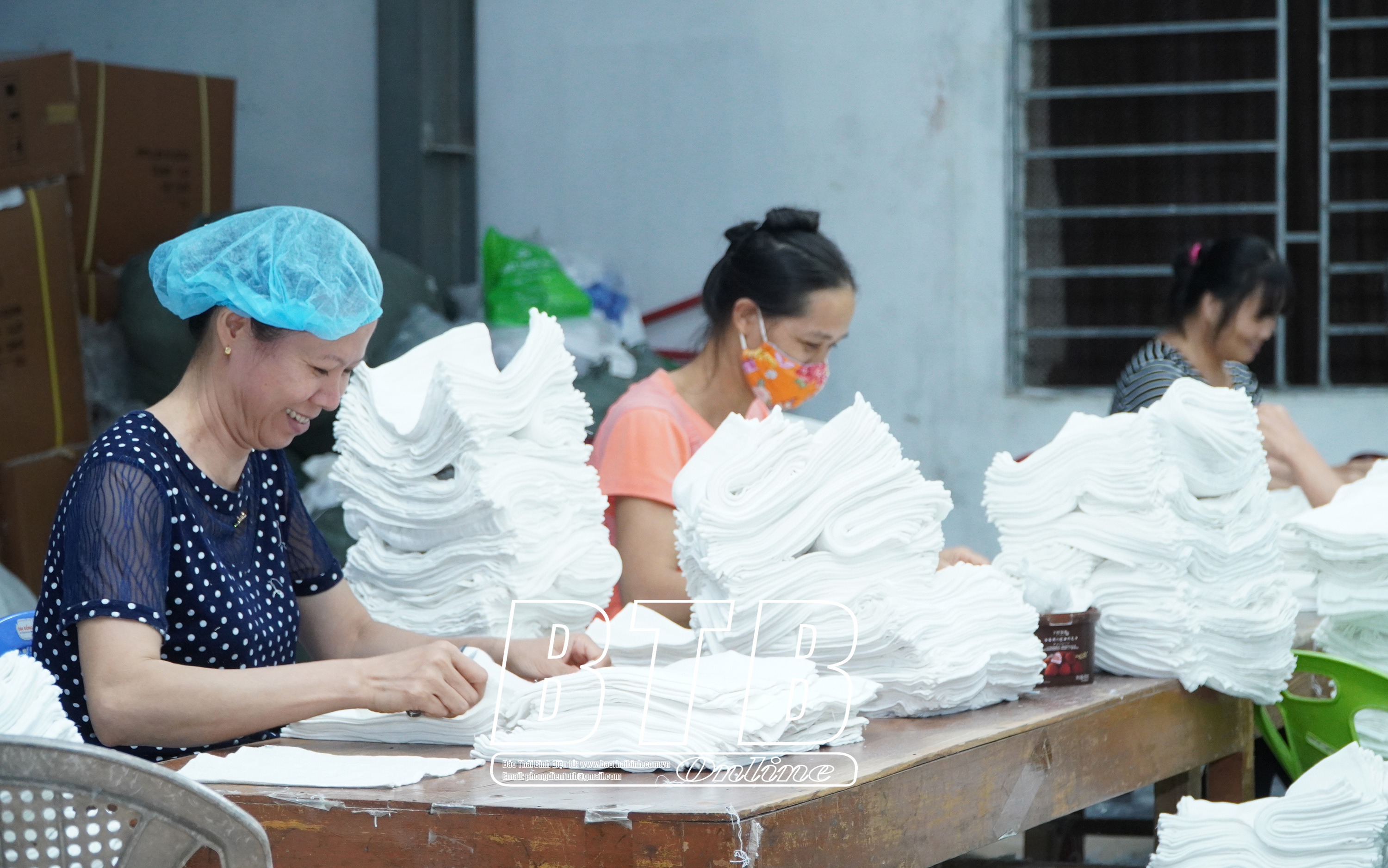 Công ty TNHH Toàn Thắng (cụm công nghiệp Đồng Tu, huyện Hưng Hà) chuyên sản xuất sợi, khăn bông và găng tay bảo hộ lao động. Những ngày này, công nhân tập trung cao độ cho sản xuất để kịp đáp ứng nhu cầu thị trường cũng như các đơn hàng đã ký với đối tác nước ngoài.