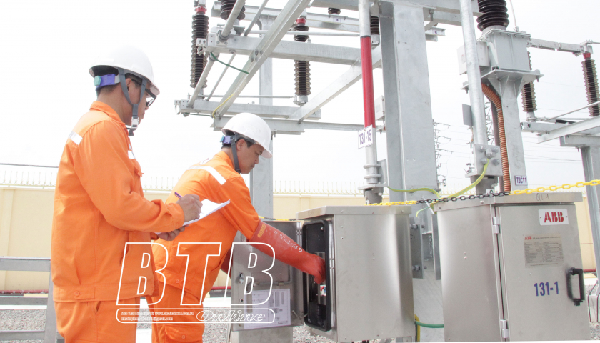 Công nhân ngành điện kiểm tra các thiết bị trạm biến áp bảo đảm cung cấp điện cho khách hàng ổn định.