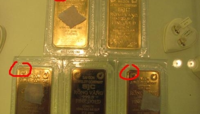 Tình trạng tương tự cũng xảy ra với vàng miếng hai chữ (seri gồm hai chữ trước dãy số, được gia công sau này) nhưng bị móp méo.