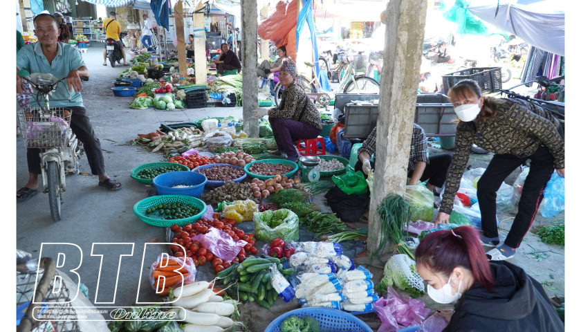 Chợ Chùa, xã Đông Á (Đông Hưng) là nơi cung cấp đa dạng mặt hàng nông sản, thực phẩm thiết yếu phục vụ người dân.