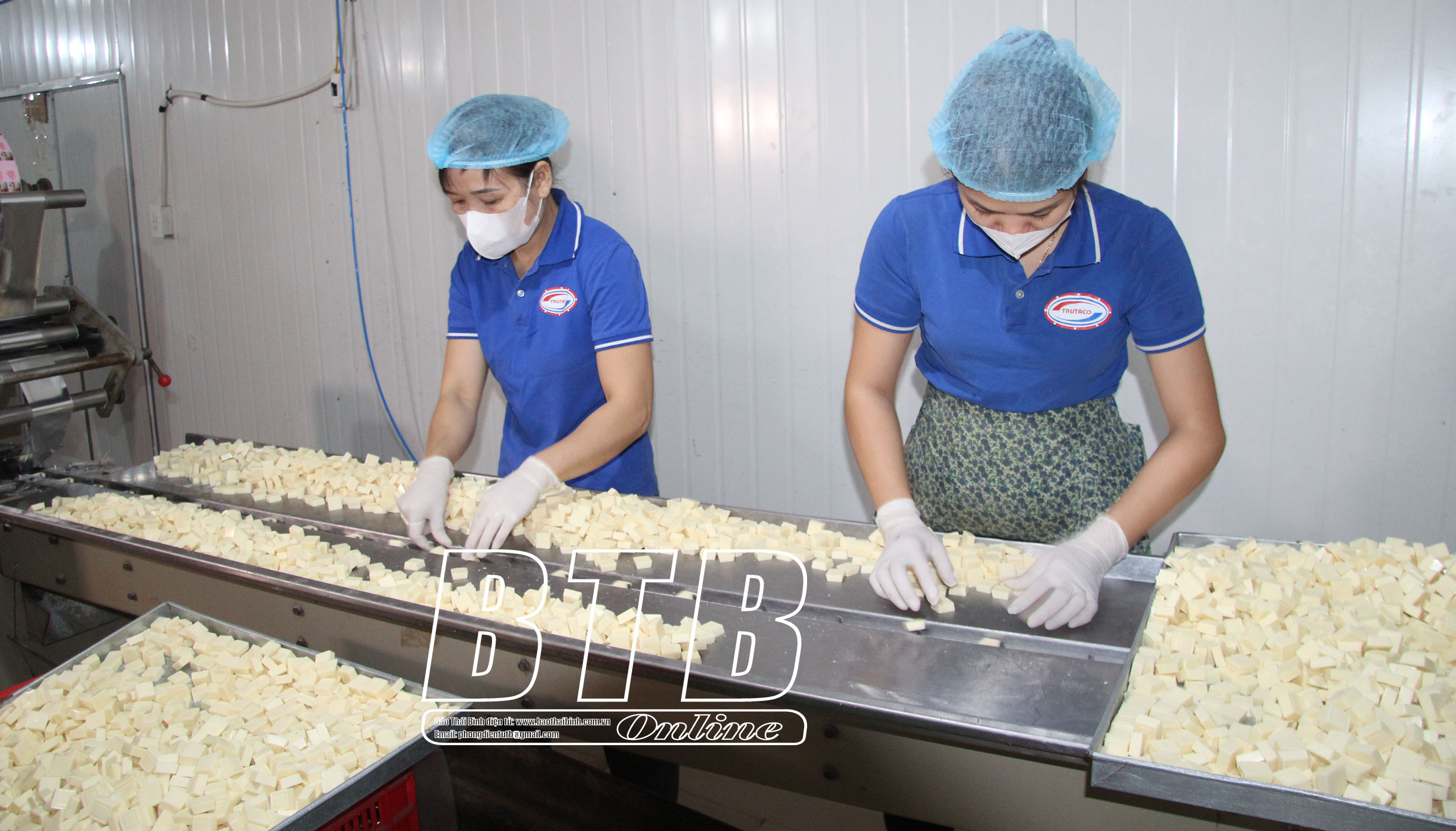 Đi trên con đường làng của thôn Dương Ngọc trong buổi chiều cuối năm, mùi hương thơm của mạch nha, của lạc, của vừng... lan tỏa khắp nơi. Những ngày này, công nhân Công ty TNHH Sản xuất và thương mại Trường Thuận đang nhộn nhịp vào dây chuyền sản xuất kẹo. Đây là thời điểm nghề làm kẹo lạc, kẹo dồi vào vụ tết. Vốn xuất thân từ làng Nguyễn, xã Nguyên Xá (Đông Hưng) nên khi sinh sống tại xã Tân Tiến (Hưng Hà), anh Phan Văn Trường đã mạnh dạn xây dựng cơ sở sản xuất kẹo lạc, kẹo dồi để phát triển nghề ngay tại địa phương. Ban đầu xưởng của anh chủ yếu sản xuất thủ công, tuy nhiên do nhu cầu của thực khách ngày càng nhiều nên năm 2019, anh quyết định thành lập Công ty và đầu tư máy móc để sản xuất với số lượng lớn hơn đáp ứng thị trường. Với tiêu chí không sử dụng chất bảo quản, sản xuất tới đâu, tiêu thụ tới đó, không để hàng tồn, bảo đảm sản phẩm khi ra thị trường luôn tươi ngon, giữ nguyên hương vị, giòn của lạc, vừng… nên sản phẩm của Công ty được nhiều khách hàng tin dùng. Trung bình 1 năm Công ty sản xuất 70 - 80 tấn kẹo xuất bán cho các tỉnh.