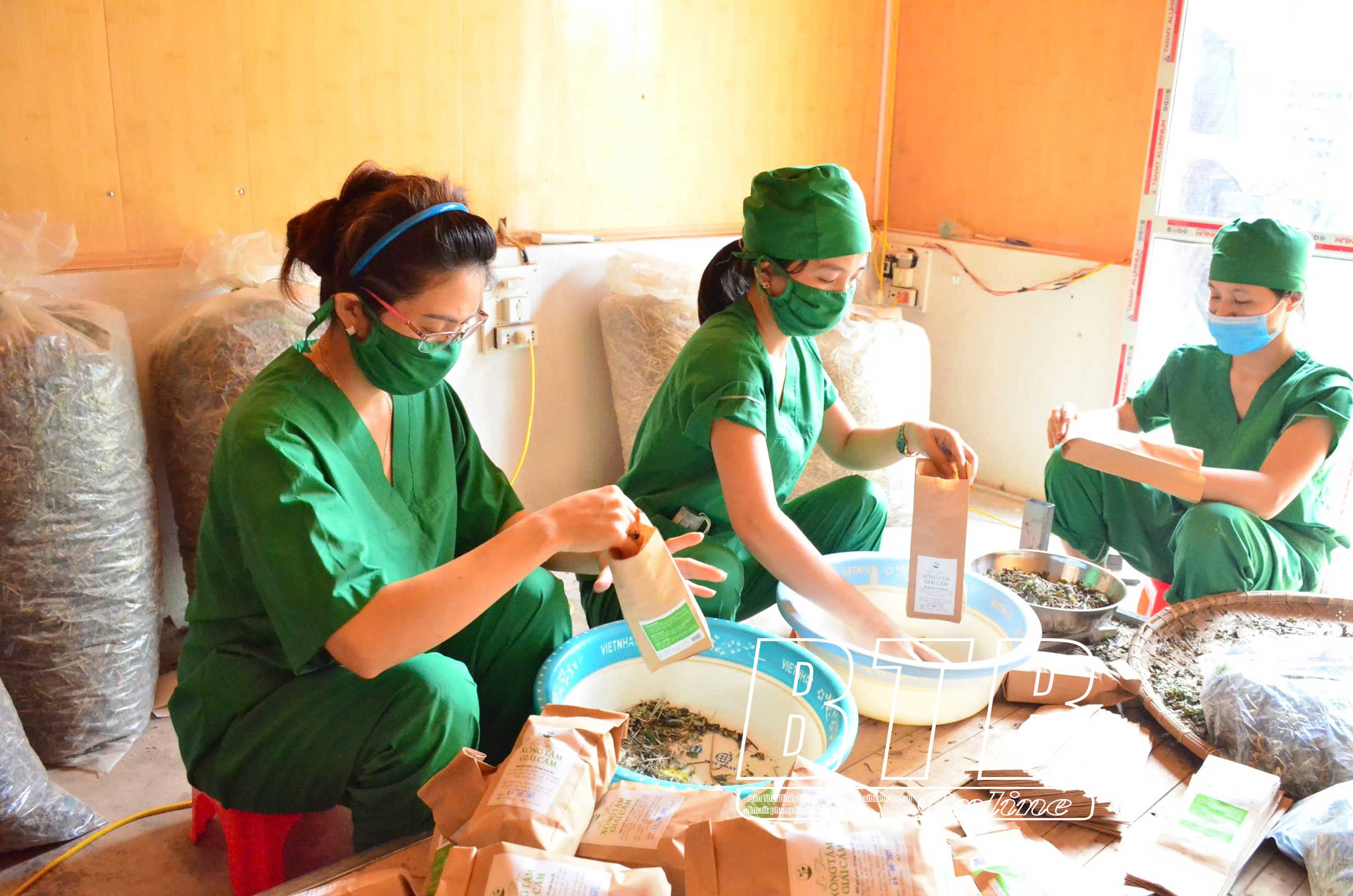 Công nhân HTX Nông dược Gotafarm đóng gói lá xông, lá tắm.