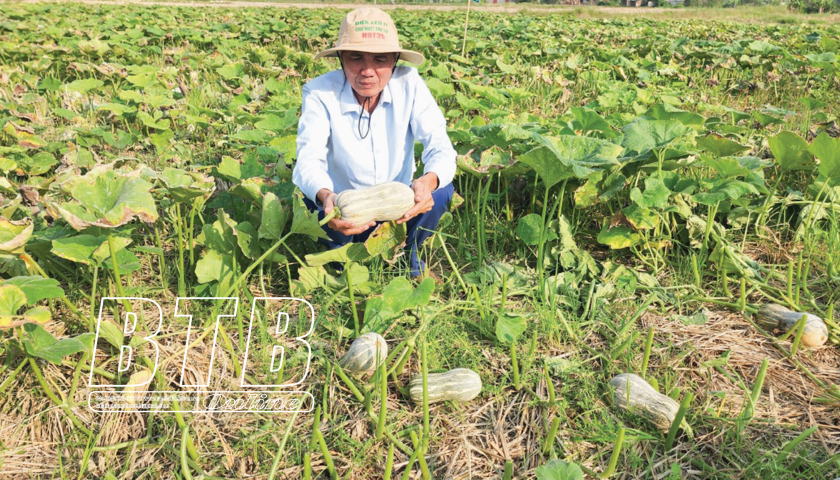 Nông dân xã Duyên Hải (Hưng Hà) thu hoạch bí.