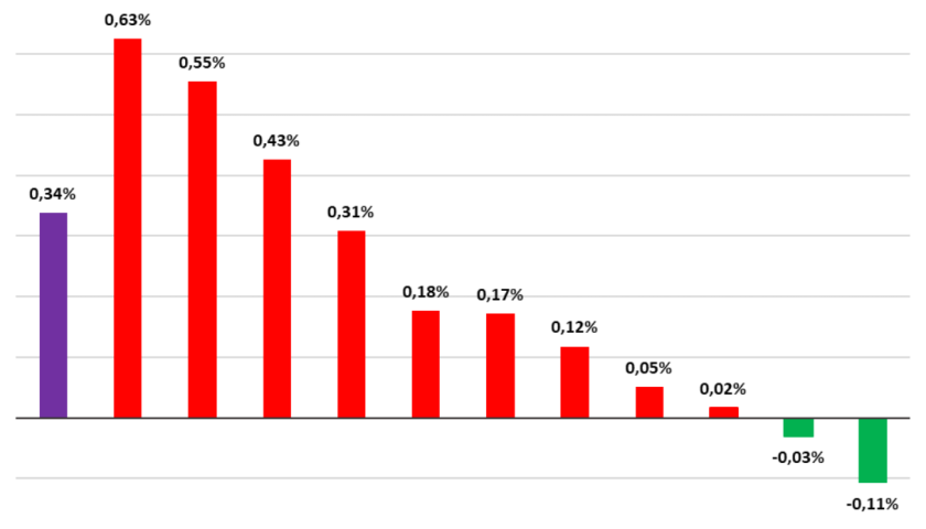Tốc độ tăng/giảm CPI tháng 2-2025 so với các tháng trước. Nguồn: Cục Thống kê