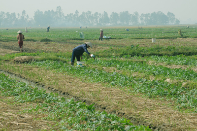 Bác Nguyễn Đình Tam thôn Kim Châu 2 đã 60 tuổi nhưng năm nào cũng trồng cây vụ đông. Năm ngoái xe ô tô về tận đầu bờ để thu mua, tính ra bác được 4 triệu đồng/sào bắp cải. Năm nay chỉ trồng có 4 sào, chủ yếu là su hào, khoai tây, đỗ và bí xanh, dự tính bình quân cũng đạt từ 2-3 triệu đồng/sào. Ra cánh đồng Thự Bạc gặp bác Đào Văn Lợi thôn An Lạc. Bác nói năm nào cũng trồng trên một mẫu rau màu, năm nay nhà bác trồng 1,1 mẫu chủ yếu là rau cải ngọt, bí đao, dưa hấu.