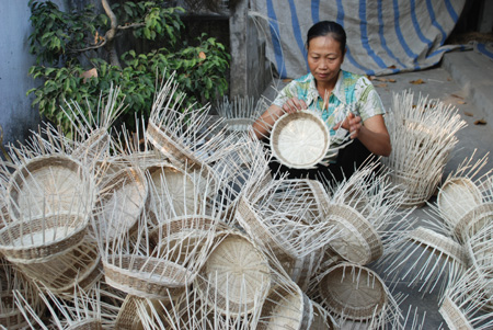 Nghề mây đan xuất khẩu xã Vũ Đông. Ảnh: Ngọc linh