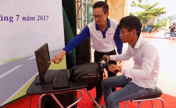 Anh Phí Ngọc Cầu, Cửa hàng trưởng Head Kường Ngân 4 hướng dẫn khách hàng trải nghiệm thực tế việc lái xe trên máy RT.