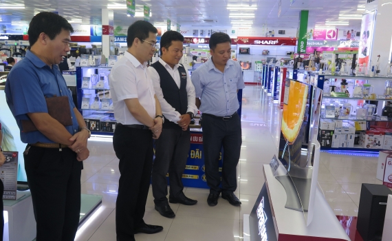 Đồng chí Nguyễn Hoàng Giang, Tỉnh ủy viên, Phó Chủ tịch UBND tỉnh kiểm tra tình hình kinh doanh tại Trung tâm Điện máy Trần Anh.
