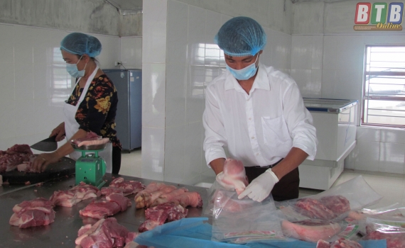 Giết mổ lợn đúng quy định tại HTX SXKD lương thực thực phẩm Ban Mai BIO (Thái Hồng, Thái Thụy).