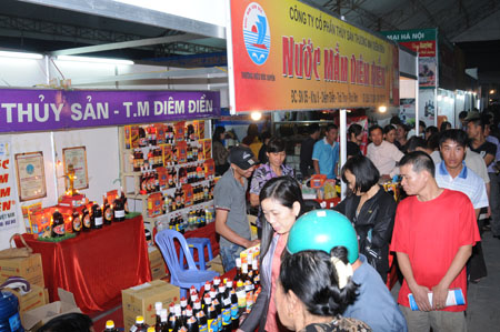 Gian trưng bày sản phẩm của Công ty cổ phần Thuỷ sản thương mại Diêm Điền tại hội chợ nông nghiệp Quốc tế Đồng bằng Bắc Bộ năm 2011 tại Thái Bình. Ảnh: Thành Tâm