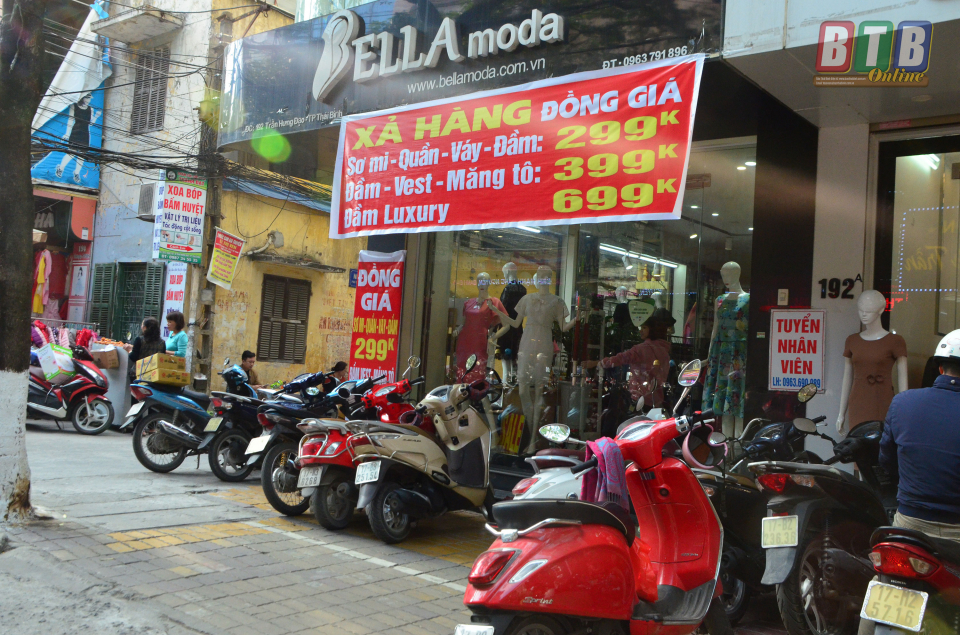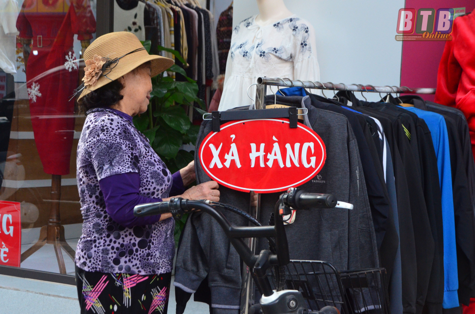 Trên phố Trần Hưng Đạo, nơi được mệnh danh là phố mua sắm thời trang sầm uất nhất hiện nay tại Thái Bình, không khó để bắt gặp cảnh tượng các tấm biển quảng cáo như: xả hàng cuối năm, sale đến 70%, bán hết để ăn tết, xả kho, mua 1 tặng 1 … khiến người qua đường không khỏi hoa mắt.