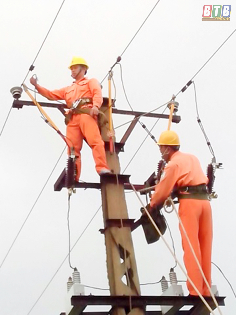 Điện lực Kiến Xương thường xuyên tổ chức kiểm tra, duy tu, bảo dưỡng đường dây bảo đảm cấp điện ổn định.