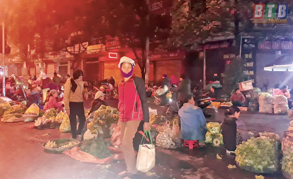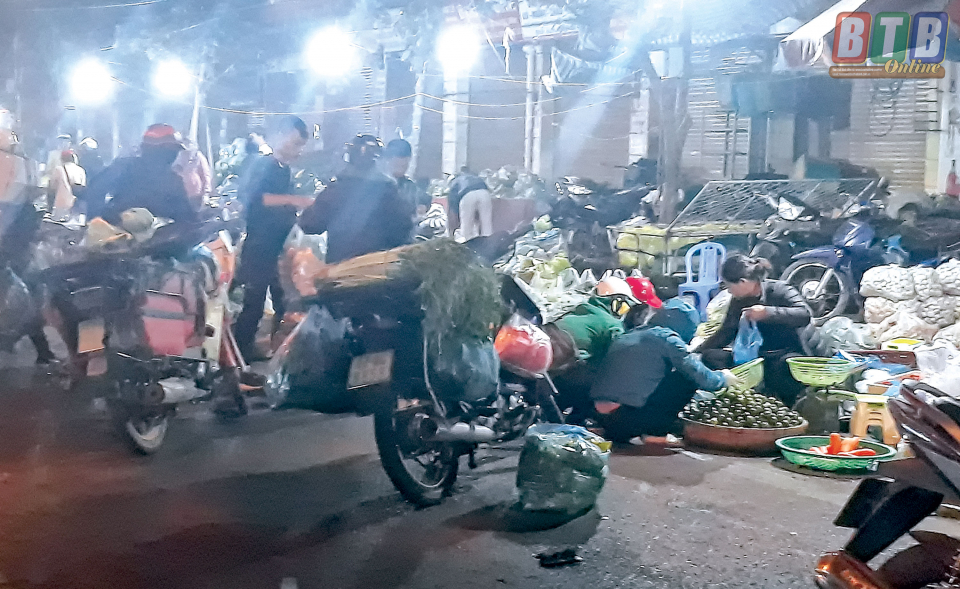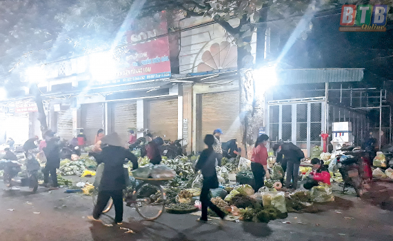 Chợ đêm thành phố ngày thường vốn đã nhiều hàng hóa, ngày giáp tết càng ăm ắp hơn với chủ yếu là hàng nông sản, hoa tươi, không chỉ đáp ứng nhu cầu mua sắm mà còn thỏa mãn cái thú thưởng ngoạn cho người đi chợ đêm. Nếu muốn hòa mình vào không khí mua bán ồn ào, nhộn nhịp của chợ đêm, bạn hãy đến đây từ khoảng 3 - 4 giờ sáng nhé. Vì đó là thời điểm đông vui, tấp nập nhất. Chợ đêm thành phố là đầu mối cung cấp hoa tươi cho cả thành phố và các vùng lân cận. Đêm nào cũng vậy, từ những chiếc xe tải chở hoa chuyển về đây, các tiểu thương vận chuyển tiếp về các đại lý, sạp hoa bán lẻ. Hoa ở chợ đêm thật phong phú, nào cúc, nào hồng, nào lan, nào ly, có cả những giống hoa mới cũng góp mặt ở đây. Những bó hoa nhiều màu sắc còn e ấp hơi sương sẽ lần lượt được xếp cẩn thận trên các xe đạp, xe máy tỏa về các ngả đường. Đến đây, bạn có thể tìm thấy những bông hoa đẹp mà giá cả lại vừa phải, hợp lý. Chợ đêm thành phố còn khiến người đến như “chìm” vào thế giới rau, củ với những “núi” rau, củ đủ loại như su hào, súp lơ, bắp cải, cà rốt... Ngắm nhìn những chiếc xe thồ được cải tạo để người mua, người bán chồng chất đủ các loại rau, củ, quả cao ngất ngưởng từ khắp nơi hối hả chở về chợ đêm rồi lại từ chợ đêm tỏa đi các chợ, các điểm bán lẻ mới thấy cuộc sống mưu sinh ở chợ đêm chẳng mấy dễ dàng.