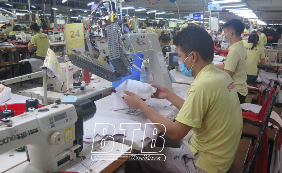 Sản xuất tại Công ty Cổ phần May xuất khẩu Việt Thái (cụm công nghiệp Thanh Tân, huyện Kiến Xương).