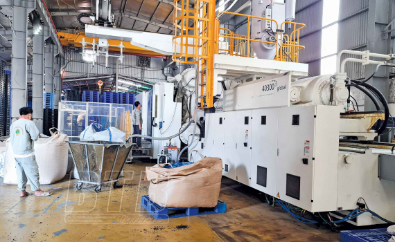 Dây chuyền sản xuất pallet nhựa của Công ty TNHH Phát triển công nghệ khí sinh học môi trường xanh.
