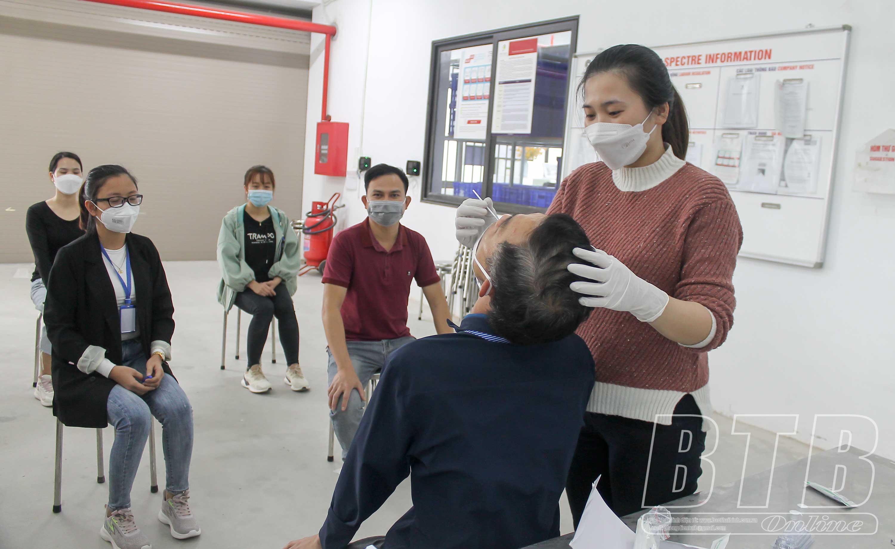 Công ty TNHH Công nghệ may mặc Spectre duy trì việc test nhanh sàng lọc Covid-19 định kỳ cho người lao động.