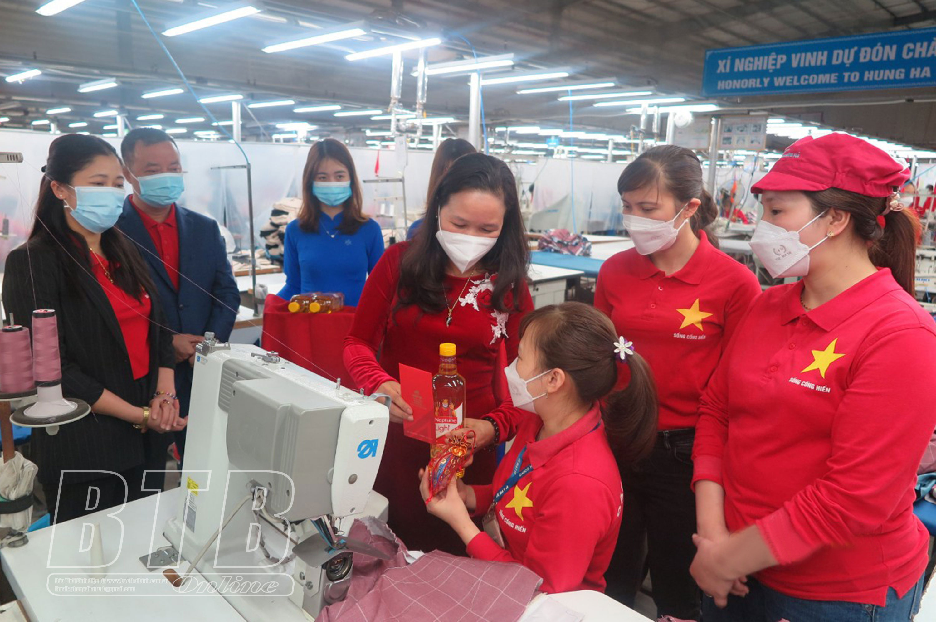 Lãnh đạo Xí nghiệp Veston Hưng Hà tặng quà, động viên người lao động thi đua đẩy mạnh sản xuất ngay từ những ngày đầu xuân mới.